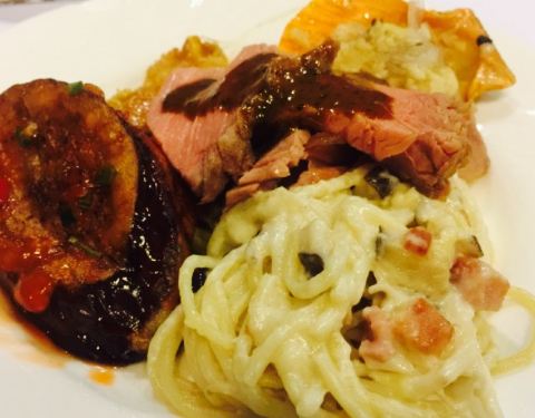 一进酒店大门口感觉装修挺大气的,虽然有点年代感,以前来说算豪华了。我们是五点多到餐厅的,自助餐厅在M层,还没用餐开始,我们就坐下来了,感觉用餐环境挺安逸的。今日公司部门活动,19个人爬完银瓶嘴山过来吃自助餐,幸好是提前订了位置,来到餐厅时竟然被告知所有位置已被预订完毕。真没想到自助餐开始后可以席无虚坐。然后食物方面,样式挺多的。第一印象是那个烤羊大腿,厨师会帮忙把肉切片,味道甚好,并且只有一个,吃完就没第二个了。蒜蓉烤生蚝,芝士青口,不错。冷熟食海鲜有生蚝,圣子,白沙,花螺,青口等,本人觉得除了生蚝其他都不错。可能生蚝不大新鲜。但是三文鱼刺身真的卖相太差了,薄切不像薄切,厚切不像厚切,三文鱼切的形状各种形状的。三文鱼部分味道口感还好,但有些三文鱼嚼起来有残渣的。然后不知放在寿司那里的酱油是啥酱油。生抽吗。表示好咸。寿司有,三文鱼寿司,希鲮鱼寿司,玉子寿司。黑椒牛扒,卖相多汁,切开发现估计是五成熟,因为血汁都出来了,本人是吃不惯那么生的牛扒的,如果你吃得辣,吃得生,那你会开心。哦,同事大赞了这边的沙拉。整体来说,体验挺好,大家都吃得很高兴。对得起这个价钱。