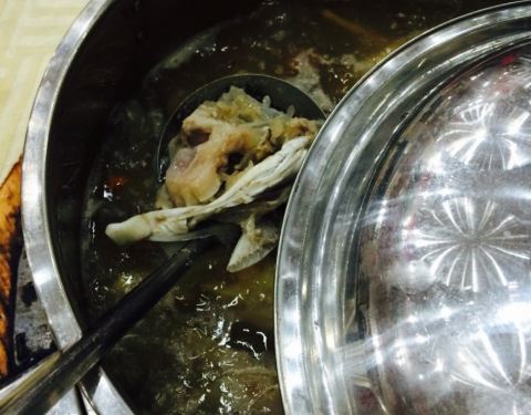 罗村的老企业之一。记得读大学的时候,之所以后来一直都没再去光顾,由于个人原因在这家店里和其他人曾经发生过一件很不开心的事情。有一天,妈妈说不如吃鱼头吧,于是乎我又想起这家店了。沙头佬最闻名的就是鱼头和鸡,所以到店肯定会点这两样东西的。最普遍的吃法就是开锅。点了一个清补凉的锅底,按顺序先放鸡,吃完鸡后,再放鱼头和蔬菜。鸡肉嫩滑细腻,清远鸡的特色,鱼头新鲜,个头不大不小,放入火锅稍微煮后,十分好吃。吃完肉类后,再放入蔬菜稍微过水,正。这是一家老式餐馆,服务生都是一些阿姨,可是很麻利。餐厅卫生一般,不过胜在出品口感有保证。