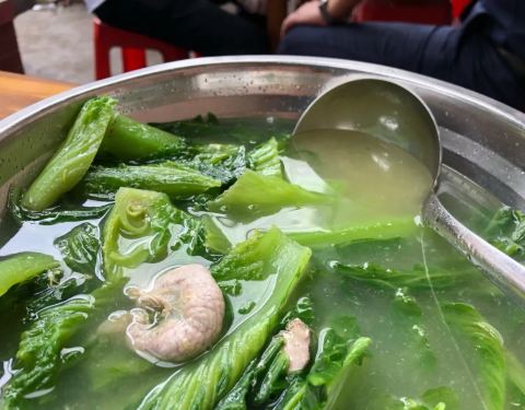 位置不知道如何形容,路过这家店蛮久了,那天就想着说,试一下呗。就是那种大排档这样子的,一只鸡好像78一只,点了再烧。我本人不开心有嚼劲的肉片,所以这鸡对我来说,有点儿韧。搭配汤好像十五块吧。不需要茶位费。整体来说,也不贵。口感看个人咯。