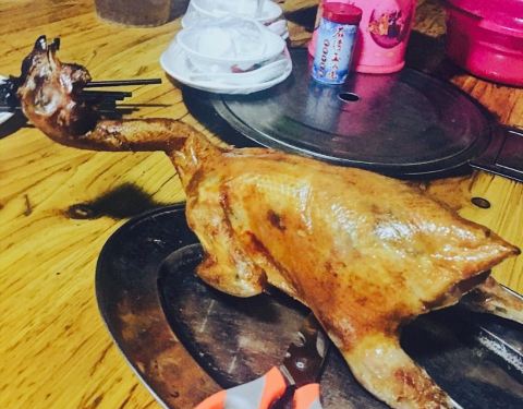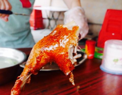 下午坐着坐着,突然就想吃烧鸡了...果断打电话去昌 记预定了一只,老板让间隔一小时过去自提,到了昌 记,那个破房子依然还是破房子..到了以后,鸡是 老板新鲜从炉子里面取出来的,一提过来就香气四溢 我一般不在...