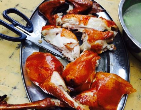 最近这段时间一直在找好吃的烧鸡吃,上次去了一家老字号给坑得没话可说,于是发动朋友圈,朋友给推荐了这家在桂城万达附近的烧鸡店,虽然地处偏僻,在村落里面,不过很容易看见门店,就在村路旁边,这边的烧鸡要提前预订,到了直接就有烧鸡吃了,烧鸡一上桌,香气就扑面而来,而且盘子,里边的汁水还不少,这边的烧鸡配把剪刀,用剪刀来剪,开吃第一口,蜜汁味,烧鸡本身味道融合在一起,那味道无法言语,连鸡胸肉都烧得滑滑的,还有种香甜的味道,配上白饭,啧啧。然后点了个排骨,排骨蜜汁不够,有点烧焦了,一般般吧。这家的烧鸡是我吃过那么多的烧鸡之中排第一。