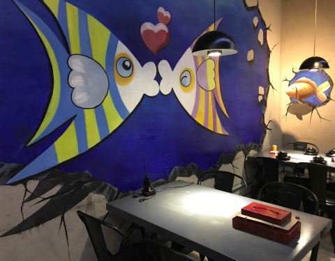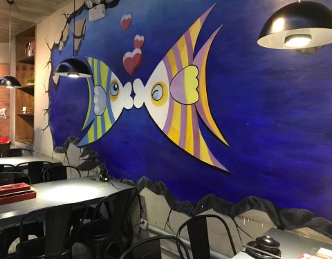 就喜欢这壁画,就喜欢这里的烤鮰鱼,味道美美