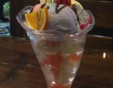 - 点了2个水果沙拉冰激凌,表皮脆脆的,里面有好多种水果,口感很好,蛮高兴的