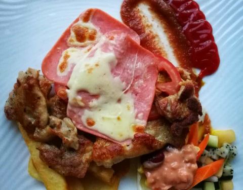 - 扒的品质还算可以,煎出来后很入味,也比较嫩,沙拉水果蔬菜新鲜,很喜欢