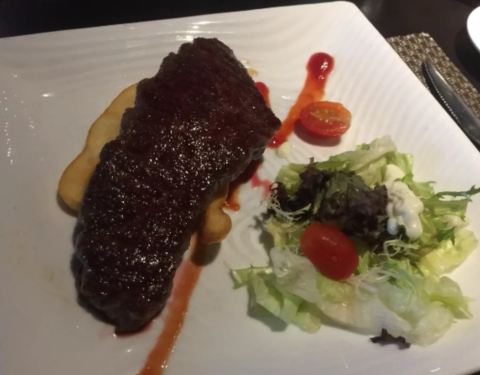 点了餐厅招牌的雪花牛肉,牛仔骨,羊排,口味还行,分量很大,性价比还可以。扒的品质还算可以,煎出来后很入味,也比较嫩,沙拉水果蔬菜新鲜,很喜欢。
