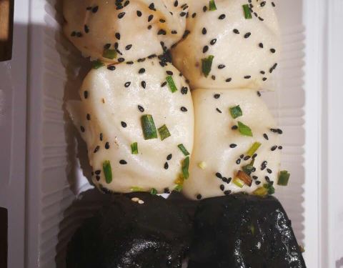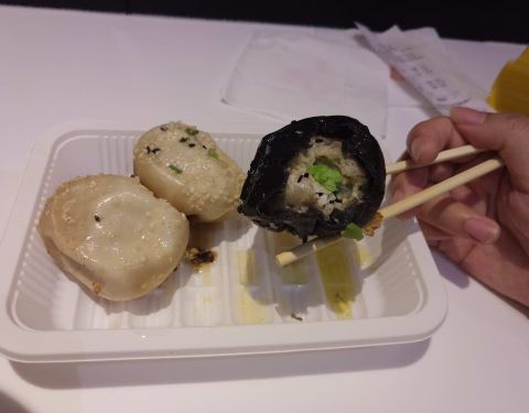 现在有新品 鱼肉生煎包 不知道好吃不好吃 买了试试 不要排队