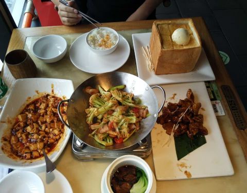 麻婆豆腐很不好吃,味道很淡,糖醋里脊都是粉面,没有肉的,东坡肉一小块味道还行就是块头太小,干锅花菜还可以吧。面包很好吃