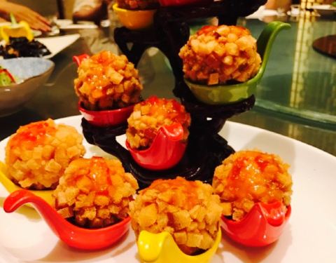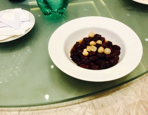 参加朋友的婚礼答谢宴选在这边,果然星级标准就是不一样啊。婚礼标配老鸭汤,一般是无人问津的,可是这边的汤里满满的各类山珍,汤头不会是白开水的口感,连着喝了好几碗。菜的味道真心还是不错的,海鲜,鱼,虾选材都很清新。餐后甜品是香菇豆沙包和榴莲酥,香菇造型欺骗了一群人,的确太逼真了。果盘品种也挺丰富,竟然还有杨桃。