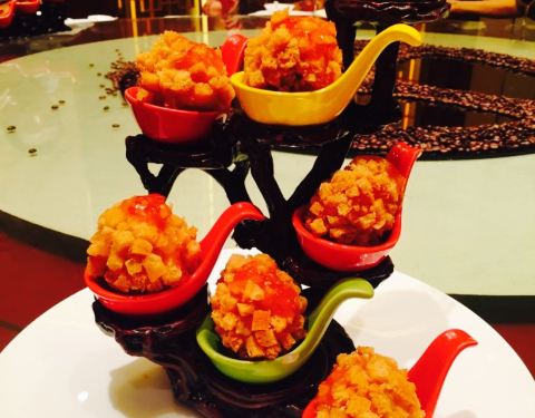位置在一环上,什么点都很堵。调头绕进去搞了20分钟。酒店环境没的说,服务也很棒,定的时候没有注意到,不给带宠物,亲戚就只好把狗狗送回家了,幸好离得近啦。但是可以理解这个规定。挑了几个菜照相。灌汤虾球...