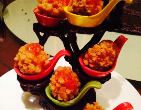 鱼头汤非常鲜,老小都爱喝。灌汤虾球每桌必点,很实在,比照片上大,我吃完一个以后居然直接就饱了