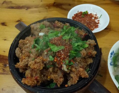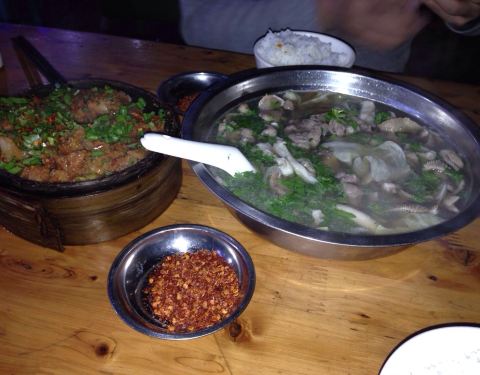 - 粉蒸牛肉和肥肠很不错,10多块钱那么大一笼,成都是绝对吃不到的,味道也很正宗,辣辣的很香