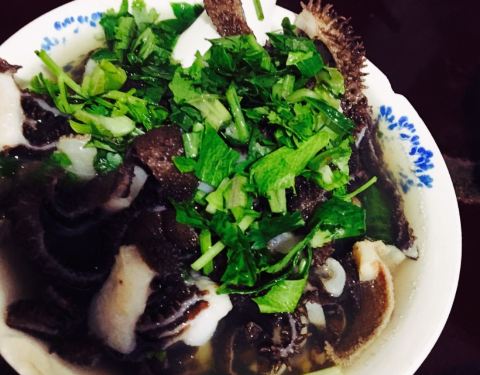 上上周去乐山玩,朋友推荐这家跷脚牛肉鲜美,因此就去试了一下。虽然看起来是清汤的,只是蘸了干碟以后还是麻辣味兼具。点了一个大锅的,然后请老板去除了不太爱吃的那几样。牛肉很嫩,毛肚,牛肚也很入味。脑花吃不来呢,但是同去的人有很爱吃这个的,里边的大白菜和包菜很甜。最重要的是汤很鲜,喝了三碗都还很想喝,不虚此行啊。