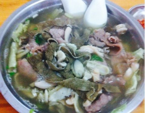 那天和熊熊两口子乐山美食之旅,之前LG就去过这家很推荐,于是就去这家,这家主要是牛杂,基本上牛肉,牛腰,牛鞭,什么都有了,还配有白萝卜,白菜等小菜,看上去很安逸。汤味儿很足,小菜和汤中,除去点了一锅...那天和熊熊两口子乐山美食之旅,之前LG就去过这家很推荐,于是就去这家,这家主要是牛杂,基本上牛肉,牛腰,牛鞭,什么都有了,还配有白萝卜,白菜等小菜,看上去很安逸。汤味儿很足,小菜和汤中,除去点了一锅牛杂以外,她们还额外要了一份火爆脆肚,自己是属于那种不吃骚味东东,但她们说还不错,特别是舌头,脆肚 。我只吃了脆肚 。确实很脆哈。又有嚼头。