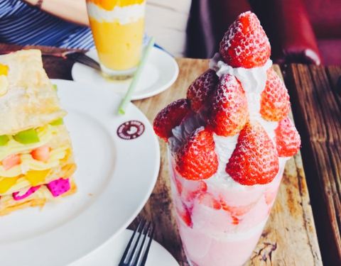 看到微博上宣传有新品,因此就去品尝。拿破仑,端上来的时候确实是吓一跳。好大一盘。每一层都有满满的水果。用刀切的时候咔嚓咔嚓的声响,听起来好有食欲。味道也还算是中规中矩。我们都没吃完。我们还品尝了草莓雪山和芒果雪山。看起来确实是颜值爆棚。草莓和芒果也很清新。只是奶油吃多了就有些闷,因此也没吃完。我们去的那天生意很好。感觉店员都有些忙不过来。收拾桌子不太及时。