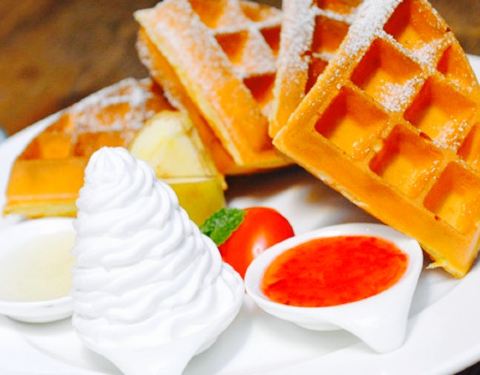 环境非常好 。是喜爱的风格 。特别适合凹造型拍照。有两层楼 。装潢风格特别前卫 。有点像韩国的咖啡厅 。潮。华夫饼,配上蜂蜜 。果酱 。热腾腾 。脆脆的 。入味。咖啡,大...