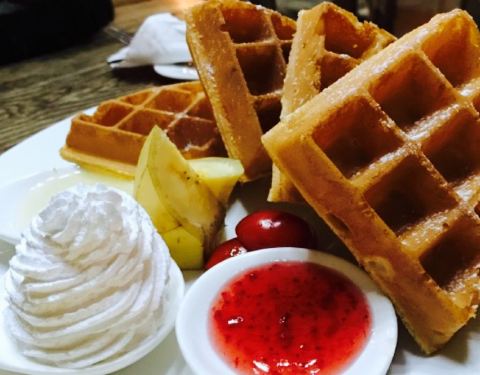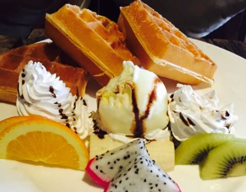 应该是乐山环境最好的一家咖啡馆吧,位置就在王府井,挺好找的。华夫饼竟然有咸味,烤的有些老