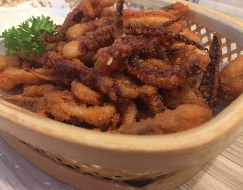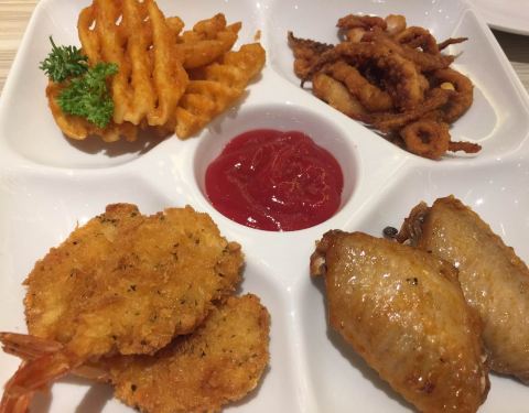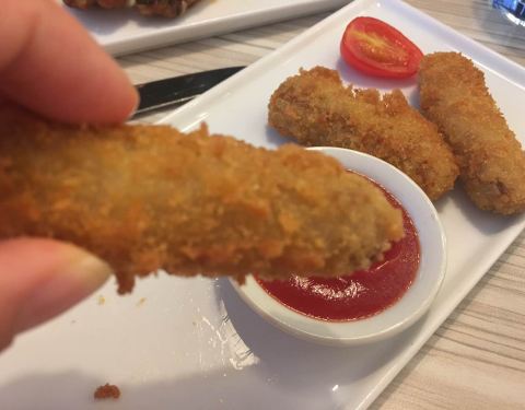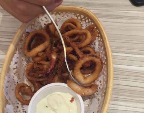 海鲜薯角薄脆,大号的,两个人吃的好撑,味道不错。但是,就一个小虾仁肿么肥四……昨天银泰城店买的同款,有十来个虾仁,这差别有豪大啊哈哈哈哈……