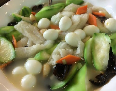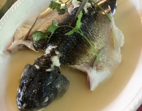 菜品出品不错,特别是招牌菜推荐:盐蒸山坑鲩鱼,浓浓的花生油香和鱼的肉质细腻,估计是养得不错