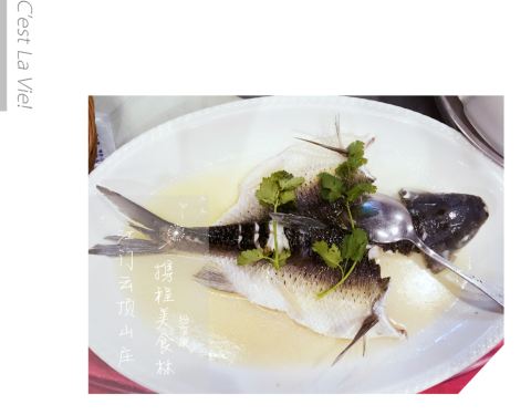 纵然餐厅地点在兜转的山路之峰,但光看食客的车龙就知道门庭若市。环境设计带点怀旧的古朴,特别老电视机,大字画报,大红灯笼高高挂等等装点一番味道。菜品出品不错,特别是招牌菜推荐:盐蒸山坑鲩鱼,浓浓的花...