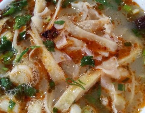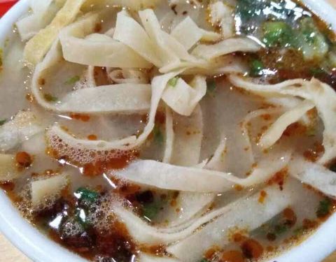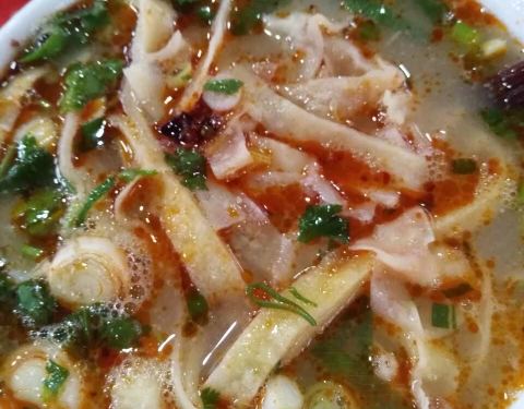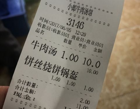离开洛阳市前,当地朋友建议我一定要试试洛阳的牛肉汤,说是和其他地方的完全不同,我被说动了,冒雨寻找他介绍的牛肉汤店,结果发现就在我昨晚入住酒店相隔100多米的地方。对面正好有个停车场,还挺方便。 下着...离开洛阳市前,当地朋友建议我一定要试试洛阳的牛肉汤,说是和其他地方的完全不同,我被说动了,冒雨寻找他介绍的牛肉汤店,结果发现就在我昨晚入住酒店相隔100多米的地方。对面正好有个停车场,还挺方便。 下着雨,屋里人员爆满,连外面也搭起了遮雨棚,放了几张桌子供食客解决午餐。我运气不错,进屋时正好有人离开,于是迅速见缝插针用背包占位,然后马上点了牛肉汤和饼丝。 牛肉汤分为好几档,唯一区别就是牛肉的多少,还可以选择牛肉牛杂双拼。要了份10元的双拼,外加一份饼丝,其实就是饼条啦,完全够我饭量的饼丝,居然只要1块钱,不由再次感叹洛阳的物价之低。 和淮南牛肉汤不同,这里的牛肉汤真的里面就全是牛肉(或牛杂),除了葱花、香菜、一点辣油外,没有什么其他的东西,汤味更为厚重、浓香,给的肉是真多。按个人喜好可以继续加醋和辣椒,小料罐子就在桌上放着。 味道好,性价比高,怪不得生意这么好~
