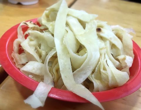 下着雨,屋里人员爆满,连外面也搭起了遮雨棚,放了几张桌子供食客解决午餐