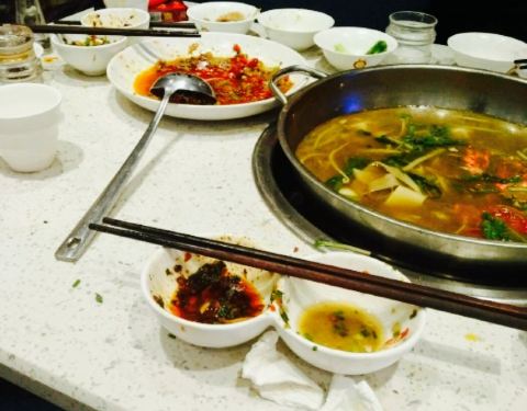 这家是短尾巴的总店,这家店位置很好找,就在南河大桥桥头上,体育馆大门对面,以前不在这个位置,还要偏右一些,现在开在原来南方鸭肠王那个位置。重新装修过了,里面风格比较以前现代化很多,只是地面还是一如既往的很滑,稍不小心就会绊跤,希望商家引起重视。因为临近新年,生意真好,六点到已经没有大桌子了,我们五个大人勉强凑了张四人卡座,太挤了,点菜,等菜,服务生态度不好,说了十次才会理你一次,就餐就如同打仗,很不开心,上菜速度也是相当慢,根本就没有服务一说,都是你嘴巴喊痛了才理你,锅都烧干了也不晓得来加汤,唉,的确是极其不好的用餐体验。菜品呢,感觉兔肉比以前的更容易烂开了,以前都是很完整的,现在挑起来很容易就散开了,肉质不如以前了。感觉生意太好了以后,餐厅各方面水准都在下降,五个人吃了366元,略贵。
