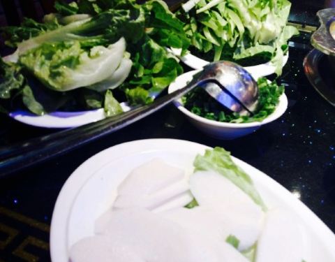 清汤适合加份蔬菜,口感很不错哦,蘸料也还可以,和芭夯兔差不多。服务一般吧,还好