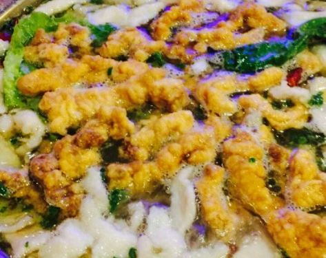 两个人点一个小份配两个素菜足够了,汤锅里的兔肉很嫩,配的菜是成片的榨菜和酸萝卜条,兔兔特别可爱所以也非常美味,蘸碟是香辣酱和剁椒酱,剁椒比较美味一点,素菜最喜欢山药片和豌豆尖,硬撑着点了一份面泥鳅,很鲜美不过确实吃不完了。总店环境不错,服务员响应度也很好。