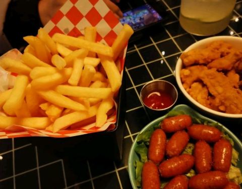 向日葵餐厅酒吧在花园路上,店面不大,但里面什么都有,里面的小吃、饮料、鸡尾酒都比较好吃,环境还是不错的,点了肠、鱼皮、中翅都不错的!分量足味道也不错,服务员小姐姐好看,态度也好。