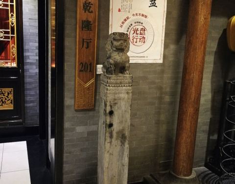 餐厅古色古香,有很多满族八旗的老物件。在这样的环境里用餐,着实有种皇家园林的感觉。