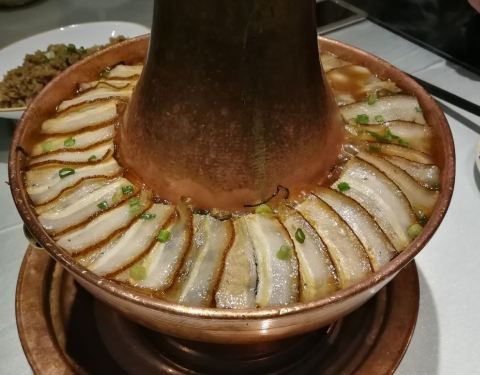 【环境】会馆位于老火车站广场对面的“银泉酒店”下,门头醒目,门内别有洞天,仿古庭院式内饰,古色古香,一至三层营业面积全部为包房设计。会所内饰环境五星好评。 【家常烧红蘑】 红蘑有“菇中之王”的美称,系承德围场特产的天然营养佳品,(无法人工种植红蘑)。会馆采用家常烧法,简单,用最少的食材,保留了红蘑其独特的鲜甜、香馥、爽口品质。五星推荐。 【皇家御品锅】铜火锅,特制的高汤,酸菜切成火柴梗粗细的丝,帮白叶绿,久煮不糜,与五花肉文火炖出的酸菜猪肉,肥而不腻,再配豆腐丸子、肉丸子、海带丝等食材,荤素食材,营养丰富,味道鲜美,香喷喷吃在嘴里暖呼呼的,身上顿时增添了热量。皇家御品锅是一道“视觉盛宴”级美食,五星推荐。 【服务】我们从进门,到吃完离开,期间,服务员们始终态度积极热情,五星好评。 【个人评价】承德会馆,从硬件到软件,整体性价比五颗星,是一家可以作为朋友、家人聚会首选的餐厅。