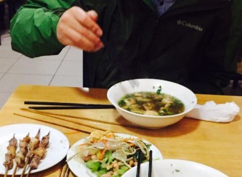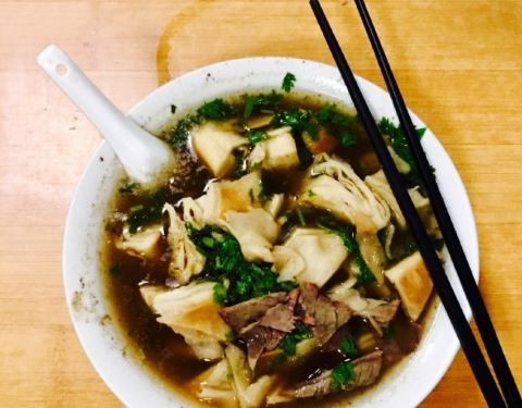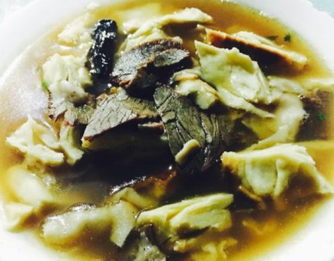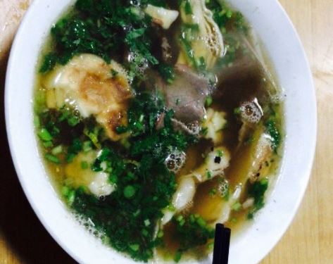 据说是一家有三十多年历史的老店了,反正一来庄里我就想去他家吃一碗罩饼。次次都是中午去,每次都在排队,一个小窗口,收钱的人就在做罩饼的师傅旁边。环境就别说了,典型的苍蝇馆子,脏,乱,服务基本就是靠自助,交完钱后师傅马上就把你的做出来了,然后自己端走找地方坐。可是味道真的是太好了,汤底浓厚,饼吸收了肉汤的浓香,配上葱白丝,很是美味。