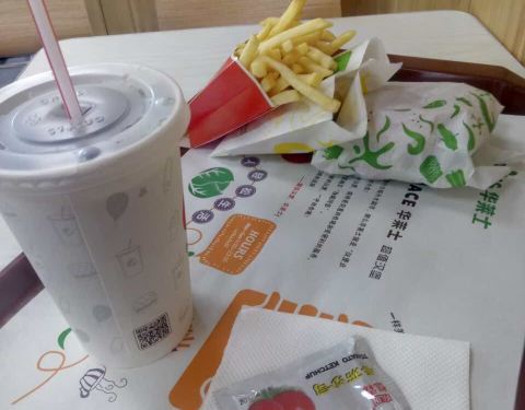 今天搞活动,10块钱三个汉堡,很划算,味道相比这附近其他店的要好吃一些。