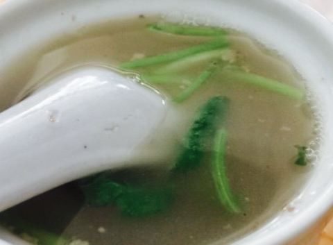 这家店生意非常热闹,人不少,老板娘就和陀螺一样的旋转着,说着当地话我都没懂,只能连猜带闷的交流,一开始点了两碗薏米汤和水粿还有半路上本地人介绍的无米粿,薏米汤确实好喝,在闷热的天气里冰冰凉凉特别清口,我们就又买了四杯作为外卖带走了,白的那份是水粿,是一种类似于米粉做的甜点上放了萝卜干碎粒,好吧,分开吃底很滑爽清甜清甜的,上面的萝卜干碎也挺鲜,可我依然无法接受放在一起的味道,无米粿似乎又叫绿粿,里边是韭菜,外面大概是裹的米糊油炸的,味道还算不错吧,因为外面印的菜谱其实不全,也没有价格我就不拍了,不过似乎他家还有点菜单来着,要去的话可以考虑,两碗甜汤+两个粿一共27元,4杯甜汤外卖一共24元。