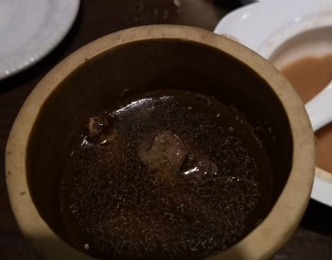 逛街逛到了客林炖就歺,点了黑蒜牛肉饭套餐、土鸡珍菌火烤竹筒饭套餐和壮元蹄。总体味道出乎意外的好,虽然价格有一些贵了,个人消费40左右