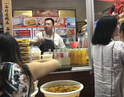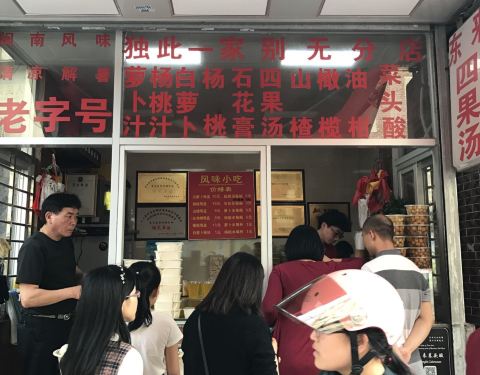 热得要死 无意中看到一家店门口好多人 才知道网红中的店 菜头酸味道很好 分别点了一片 +花生的一片 还有四果汤 门口客人是络绎不绝 没有断的时候 对面有个泮宫 没时间进去 小朋友累了要回酒店休息 外面马路上...热得要死 无意中看到一家店门口好多人 才知道网红中的店 菜头酸味道很好 分别点了一片 +花生的一片 还有四果汤 门口客人是络绎不绝 没有断的时候 对面有个泮宫 没时间进去 小朋友累了要回酒店休息 外面马路上基本上就是商业街之类加各种巷子