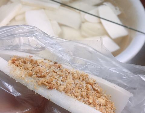 - 特意过来打包,还第一次尝试了「菜头酸夹花生」,菜头酸一剖为二,夹层抹上酱撒上花生碎,清脆中带着...