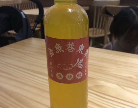 金鱼巷巷头巷尾各一家,靠近步行街的那头生意更好,另一头的人会少一点,点了网红吃法夹花生碎,确实还不错,爽口又香又脆。 看到好多人买那个水,我以为是萝卜汁和杨桃汁呢,就买了一瓶杨桃汁,打开一喝原来是腌...
