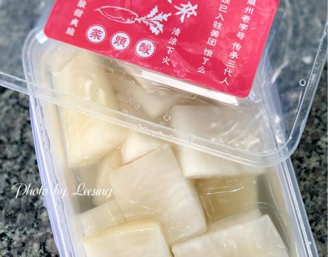 ∠( ᐛ 」∠)_ ~ 厦门人在泉州 菜头,亦是闽南语中的白萝卜,菜头酸也就是酸萝卜,对于我这酸萝卜爱好者,这是不可错过的小吃。 「菜头酸」,东来家的菜头酸,源自1960年的泉州老味道,萝卜厚切,厚度大约有0...∠( ᐛ 」∠)_ ~ 厦门人在泉州 菜头,亦是闽南语中的白萝卜,菜头酸也就是酸萝卜,对于我这酸萝卜爱好者,这是不可错过的小吃。 「菜头酸」,东来家的菜头酸,源自1960年的泉州老味道,萝卜厚切,厚度大约有0.5毫米,保留了萝卜皮,与厦门的酸萝卜差异蛮大的,厦门以薄为主,刨成片或丝,更多的是作为开胃菜,而泉州的菜头酸,则可作为零食,爽口脆甜,酸度温和,很好的把握了萝卜的清爽。 一盒10元,带汤汁,也可单买一片尝鲜,1片1元,还有菜头酸夹花生,下次有机会试试。 「杨桃」,腌制的杨桃,咸甜咸甜的,同行四人都比较偏爱它,尤其是我家阿5。