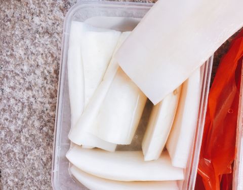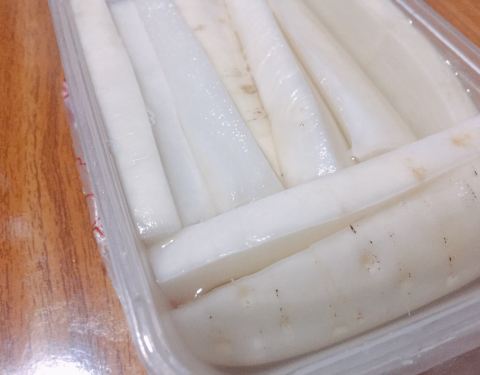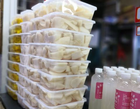 ∠( ᐛ 」∠)_ 打包了一盒菜头酸,完全不够吃,一家人一起“卡兹”“卡兹”,第二天就见底了。 厦门人泉州行“吃吃吃”的第二弹,又见菜头酸,晚上7点准备回程,特意过来打包,还第一次尝试了「菜头酸夹花生」,菜头酸一剖为二,夹层抹上酱撒上花生碎,清脆中带着沙沙,也挺不错的。 特别喜欢这“厚切”的「菜头酸」,汁水十足,咸与甜经过时间的腌制,巧妙的融入到白萝卜里,一口一个清脆,一口一个爽口,尤其是带皮部分。 夜里的东来菜头酸,游人已渐渐散去,下了班的姑娘骑着电动车,白袋子套上两片菜头酸,走了;小伙子就站在门框边上,右手杨桃汁, 左手「菜头酸」,吃得不亦乐乎。 「菜头酸」,这泉州人的小零食,如今,也是我的小零食。