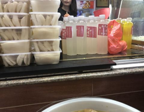 金鱼巷巷头巷尾各一家,靠近步行街的那头生意更好,另一头的人会少一点,点了网红吃法夹花生碎,确实还不错,爽口又香又脆。 看到好多人买那个水,我以为是萝卜汁和杨桃汁呢,就买了一瓶杨桃汁,打开一喝原来是腌的水,哈哈哈。请慎买。