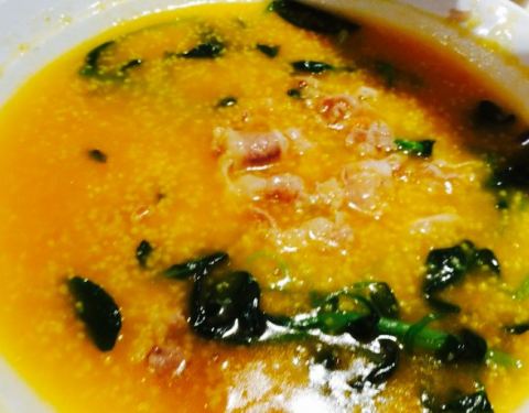 ...还可以,先炸后烤的,表皮比较松脆,好吃也可以,加的菜有豆皮,藕片,洋芋,还有宽粉,只是汤不好喝