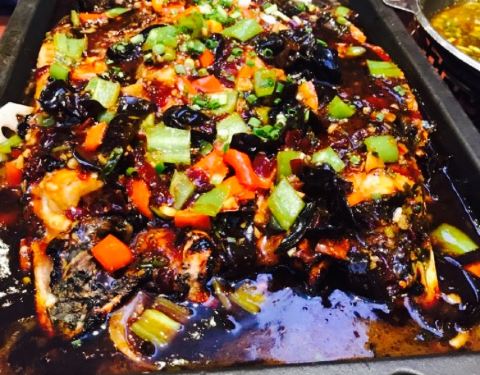 去看同学,在这家吃中饭,点了烤鱼和锅包肉,一份西湖牛肉羹,还有一个凉菜,烤鱼当时说是45一斤,小三斤的模样,可是上的比较慢,菜都吃完了鱼才上,做的香辣口味,还可以,先炸后烤的,表皮比较松脆,好吃也可...去看同学,在这家吃中饭,点了烤鱼和锅包肉,一份西湖牛肉羹,还有一个凉菜,烤鱼当时说是45一斤,小三斤的模样,可是上的比较慢,菜都吃完了鱼才上,做的香辣口味,还可以,先炸后烤的,表皮比较松脆,好吃也可以,加的菜有豆皮,藕片,洋芋,还有宽粉,只是汤不好喝。结帐的时候才110,很怀疑算错了,不过店员没给小票,也没看到消费明细。