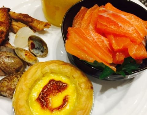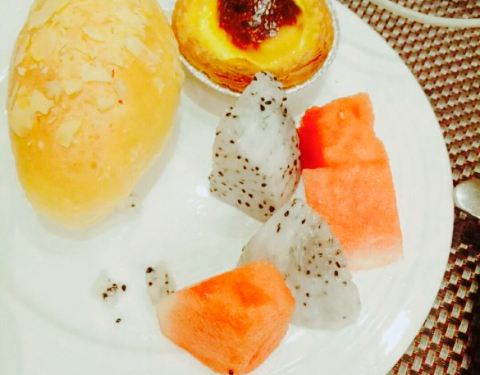 首先说一下环境,简直棒极了,卫生又清净,桌椅餐具也非常新,觉得不错??。再说服务,服务非常好,周到又细微,多余的盘子不用自己送来送去,常有人过来收,赞??。最后重点说说食物,清新,量足,烤生蚝随便吃,吃够为止,不像有的自助只限两只,不舒服,三文鱼非常特别清新,又特别土豪的好厚一片一片。花螺新鲜肉厚,海虹更是新鲜肉满,吃海鲜要的就是新鲜,水果样多,卫生,甜点样少一点,不过够吃了,热菜多样,羊排,牛排很赞,味道棒极了,蛋挞更是可口不腻,总而言之,常常旅游在各城市,吃到这么爽口的自助也是值了,很赞??。