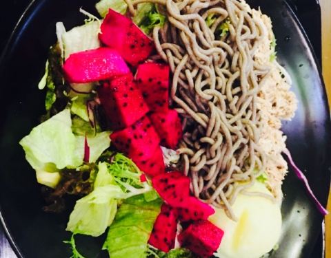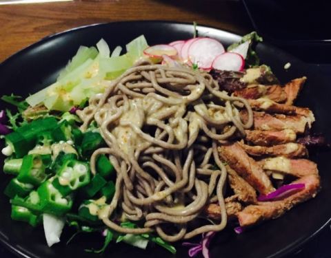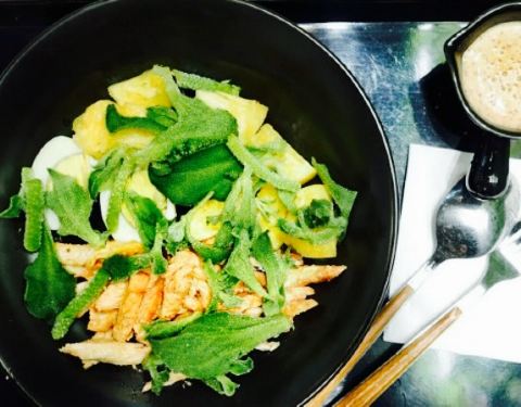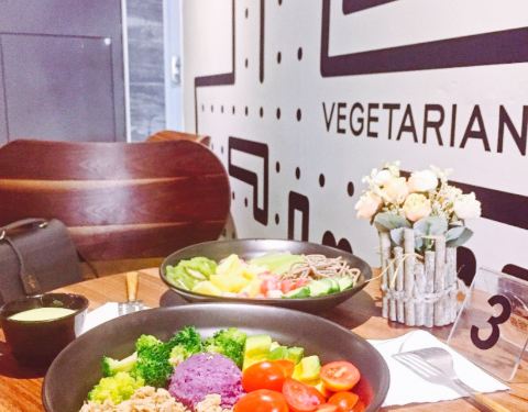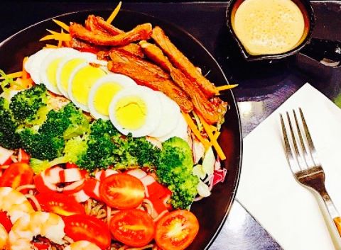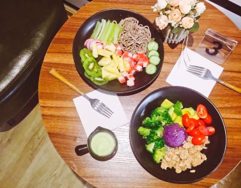 小店在华山路卡摩仑对面,环境还不错的,有2层楼。点菜的话在柜台有一排排分类的筹码,有品名和价位,这个倒是蛮可爱的,选好到收银台把筹码价格加起来,再选一份你喜欢的沙拉酱,就是总价格了,我选了法国醋汁。吃完牙齿都酸了,但很舒服,也没那些普通沙拉酱的腻歪。沙拉都很清新,自己选的,怎么看着都好看。鸭胸很嫩,蔬菜也是各种新鲜,蔬菜底必选啊,就是平常吃沙拉最普通的那几种蔬菜。吃起来脆脆甜甜的。荞麦面吃得到荞麦那种粗粮的口感,很不错。秋葵和芦笋都很嫩,秋葵那种黏黏的口感蛮特别的,芦笋一点都吃不到那种粗的纤维,口感很好。这样一份感觉健康的,一份吃完还是会有饱腹感的,不过说饿得也比较快,适合健身减肥的人。