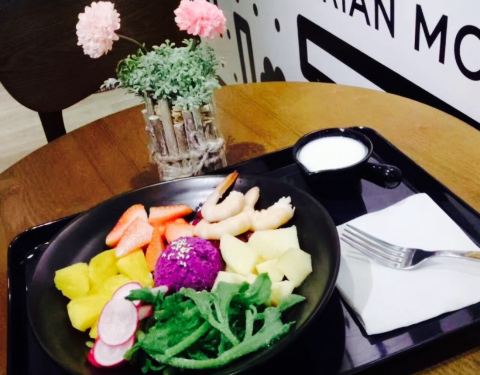 很少给五星,并不是说非常爽口,而是汕头很少有类似的健康饮食店,希望能继续开下去,有时不饿但到饭点不吃会很纠结,或者饭后要运动不想吃太饱,那选择沙拉就对了,营养又健康。【亮点】网友攻略说的外卖我都没吃过,第一次吃,环境不错,位子都是两人为主,以筹码做菜单确实新意十足,并且上面还有标明不同种类的卡路里,减肥节食者的福音,但是我提醒大家,沙拉的热量也是很多的,所以不要忘了。厨房是玻璃半开放,看起来空间比较大也比较干净。【菜品】普遍菜类土豆玉米都是4元,肉类6元,推荐玉米,鸡胸肉,西兰花,青菜底,搭配芝麻酱很撘香甜。不建议土豆泥,因为没什么味儿,自己本来很喜欢洋芋的只是这里不怎么吃的下,培根也不建议,分量不多小小三片而且也不算健康饮食。水果感觉分量不多,点水果个人觉得和酸奶酱挺搭的,下次尝试。每一份的颜值都不错。【不足】等待的时间有些长,人还没有坐满,但就要等将近20多分钟。水果种类感觉不多,芒果牛油果这些都没有,菜品品种不算多,实际上不少都是重复的,希望能够多一些选择会更好。价位倒是可以接受,也有面食当正餐也是可以的,这一份,两肉四菜一酱料(酱料都是三元),30元刚好。