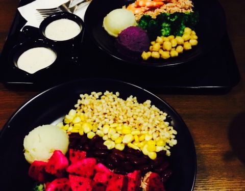 年轻人还是有新鲜的定义,概念确实不错,轻食感适合现在的人。可惜自助选择好考验个人自控能力,对于第一次来吃,每一种筹码都想拿一枚????好想试全所有的品类。小米和莜麦的口感都不错,让人喜欢上粗粮,吞拿鱼...