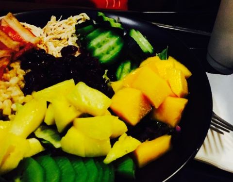 小米和莜麦的口感都不错,让人喜欢上粗粮,吞拿鱼口感偏咸,建议搭配粗粮中和口感。芒果当季,味道相当好