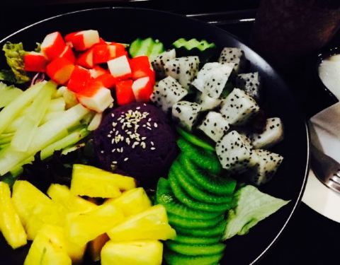 - 紫薯泥不错,可口,虾也不错,菠萝好吃,蓝莓也喜爱