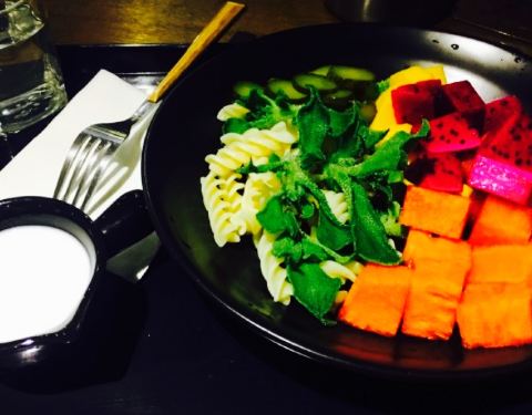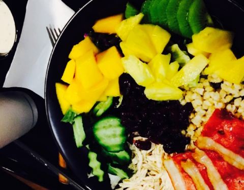 年轻人还是有新鲜的定义,概念确实不错,轻食感适合现在的人。可惜自助选择好考验个人自控能力,对于第一次来吃,每一种筹码都想拿一枚????好想试全所有的品类。小米和莜麦的口感都不错,让人喜欢上粗粮,吞拿鱼口感偏咸,建议搭配粗粮中和口感。芒果当季,味道相当好。培根口感还不错,不过烟熏鸭胸口感就略偏老。三文鱼新鲜,不过稍微薄了一点,两片12,貌似小贵。土豆泥口感一般,没有盛味堂的土豆泥好吃。紫薯泥偏苦味。这两个小泥球不建议搭配凯撒酱,有点不搭味。可是由于点的种类多,加之新开,要记得自己点了什么,要不会漏单喔。可是服务的小伙伴态度不错,点赞。